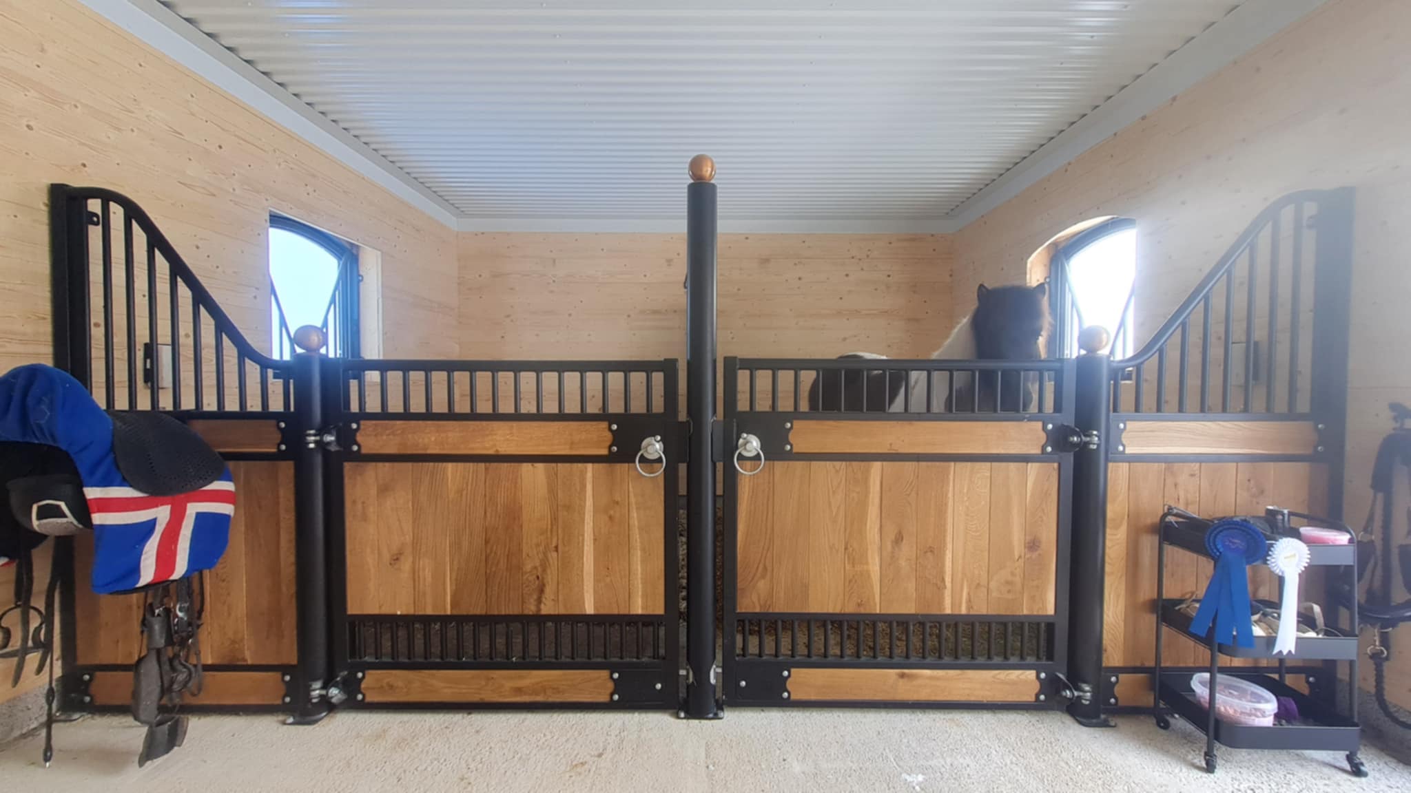 Självklart är våra stommar svetsade, inte ihopskruvade. Detta ger en mycket hållbar struktur och skrammelfri ljudmiljö i stallet.